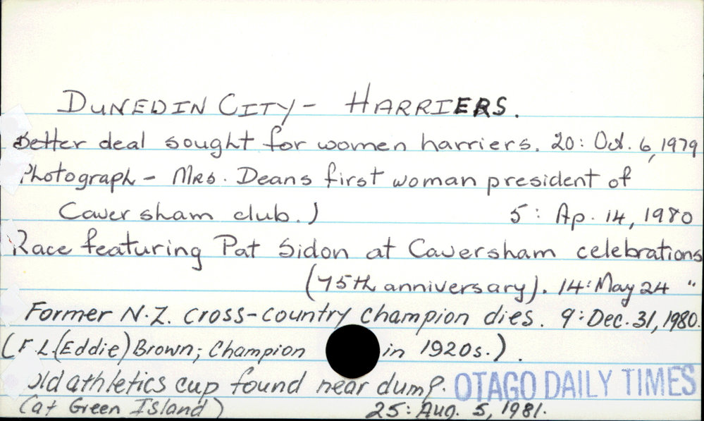 Dunedin Public Libraries (12th Feb 2017). DUNEDIN CITY - HARRIERS.. In Website Dunedin Public Libraries. Retrieved 5th Apr 2026 07:42, from https://dunedin.recollect.co.nz/nodes/view/102872