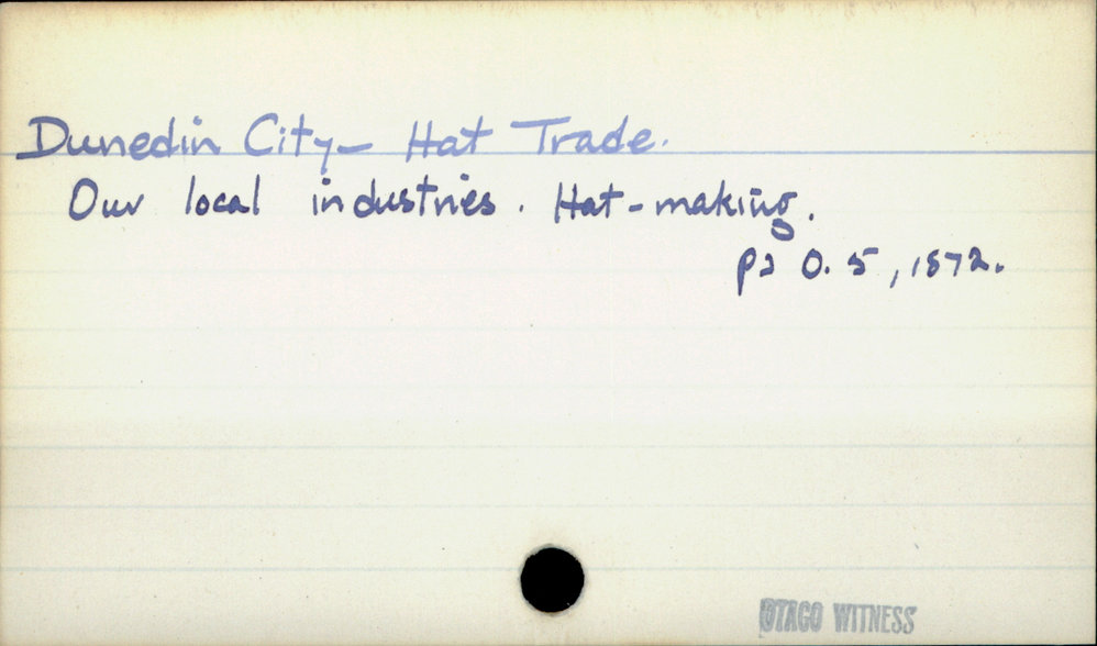 Dunedin Public Libraries (12th Feb 2017). Dunedin City - Hat Trade.. In Website Dunedin Public Libraries. Retrieved 5th Apr 2026 07:35, from https://dunedin.recollect.co.nz/nodes/view/102877