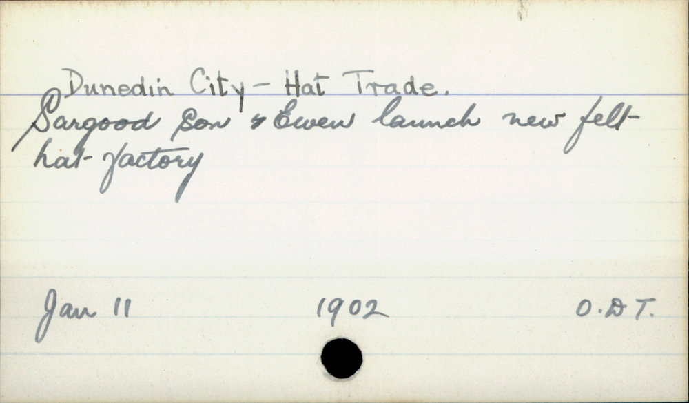Dunedin Public Libraries (23rd Jan 2017). Dunedin City - Hat Trade. In Website Dunedin Public Libraries. Retrieved 5th Apr 2026 07:43, from https://dunedin.recollect.co.nz/nodes/view/102878