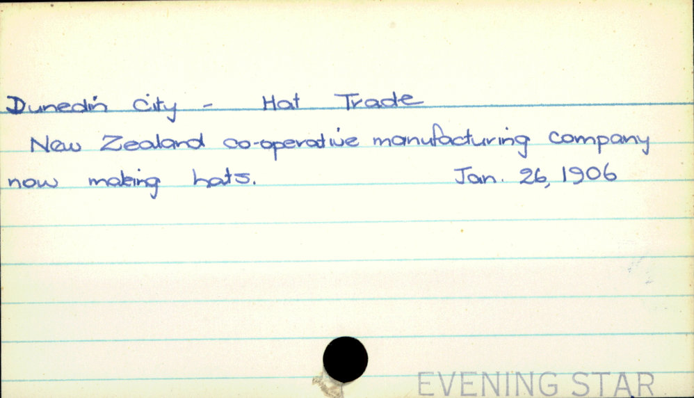Dunedin Public Libraries (23rd Jan 2017). Dunedin City - Hat Trade. In Website Dunedin Public Libraries. Retrieved 5th Apr 2026 07:35, from https://dunedin.recollect.co.nz/nodes/view/102880