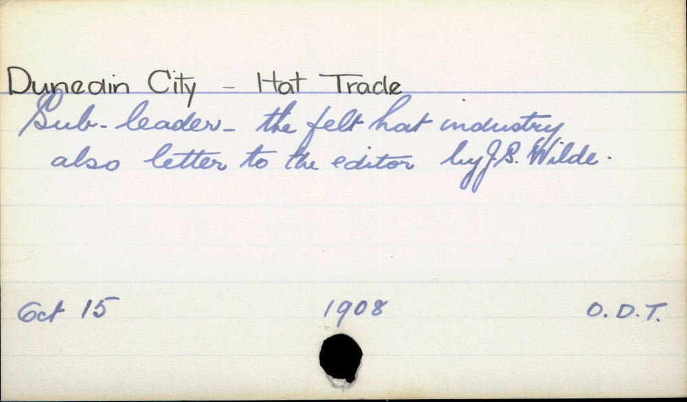 Dunedin Public Libraries (23rd Jan 2017). Dunedin City - Hat Trade. In Website Dunedin Public Libraries. Retrieved 5th Apr 2026 07:36, from https://dunedin.recollect.co.nz/nodes/view/102881