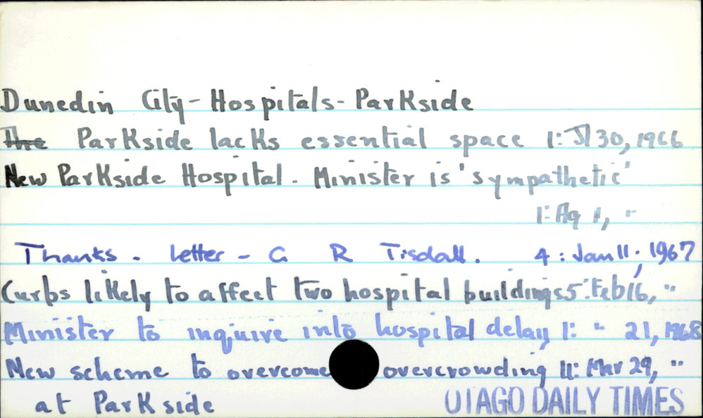 Dunedin Public Libraries (4th Mar 2017). Dunedin City - Hospitals - Parkside. In Website Dunedin Public Libraries. Retrieved 2nd Apr 2026 21:42, from https://dunedin.recollect.co.nz/nodes/view/103783