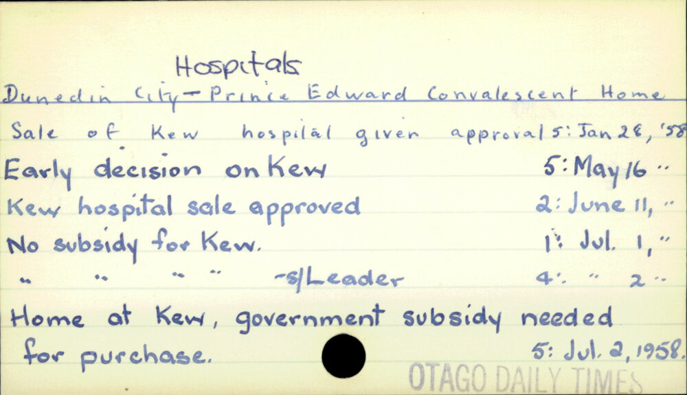Dunedin City - Hospitals - Prince Edward Convalescent Home