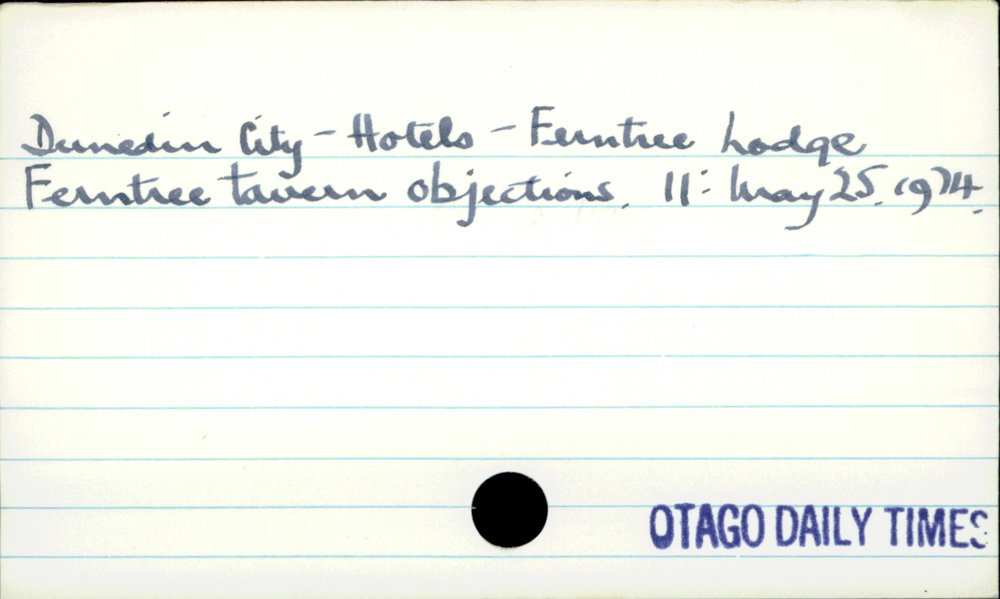 Dunedin Public Libraries (16th Mar 2017). Dunedin City - Hotels - Ferntree Lodge. In Website Dunedin Public Libraries. Retrieved 27th Mar 2026 15:10, from https://dunedin.recollect.co.nz/nodes/view/104664