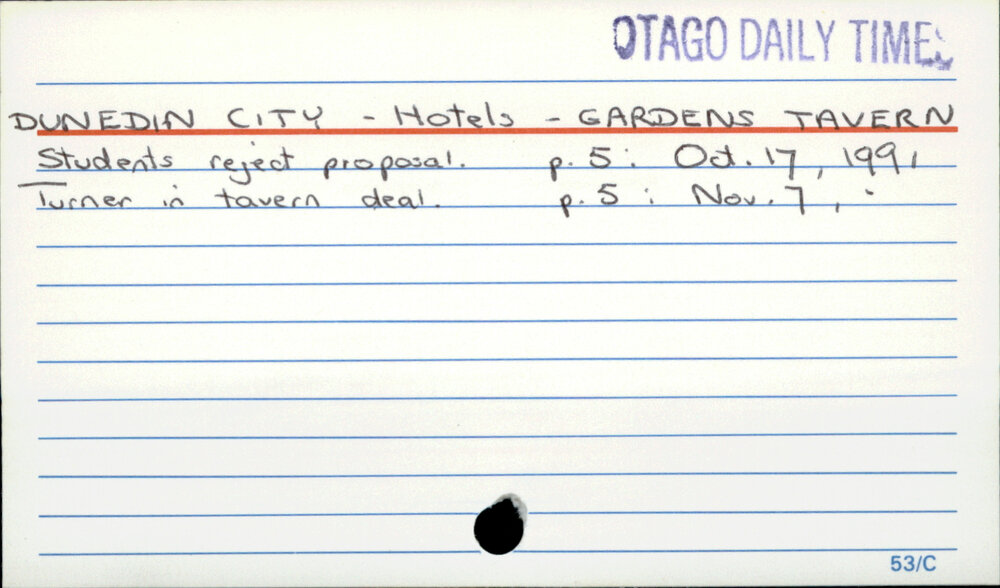 Dunedin Public Libraries (16th Mar 2017). DUNEDIN CITY - Hotels - GARDENS TAVERN. In Website Dunedin Public Libraries. Retrieved 27th Mar 2026 15:12, from https://dunedin.recollect.co.nz/nodes/view/104669