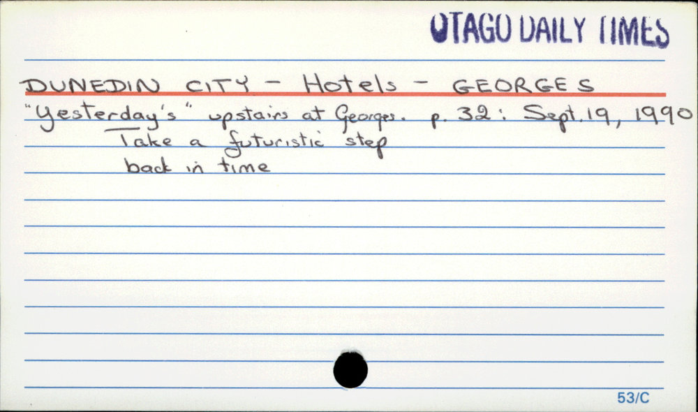 Dunedin Public Libraries (16th Mar 2017). Dunedin City - Hotels - George's. In Website Dunedin Public Libraries. Retrieved 27th Mar 2026 15:11, from https://dunedin.recollect.co.nz/nodes/view/104671