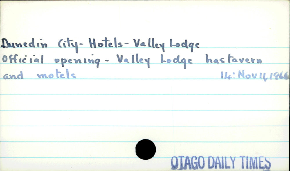Dunedin Public Libraries (23rd Apr 2017). Dunedin City - Hotels - Valley Lodge. In Website Dunedin Public Libraries. Retrieved 24th Apr 2026 01:56, from https://dunedin.recollect.co.nz/nodes/view/104778