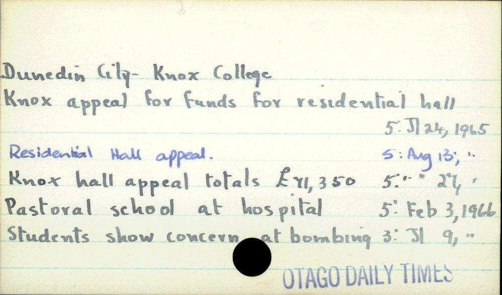 Dunedin Public Libraries (3rd Apr 2017). Dunedin City- Knox College. In Website Dunedin Public Libraries. Retrieved 4th Apr 2026 01:04, from https://dunedin.recollect.co.nz/nodes/view/105557