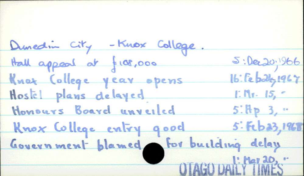 Dunedin Public Libraries (3rd Apr 2017). Dunedin City - Knox College. . In Website Dunedin Public Libraries. Retrieved 4th Apr 2026 01:03, from https://dunedin.recollect.co.nz/nodes/view/105558