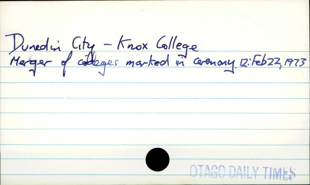 Dunedin Public Libraries (3rd Apr 2017). Dunedin City - Knox College. In Website Dunedin Public Libraries. Retrieved 4th Apr 2026 01:02, from https://dunedin.recollect.co.nz/nodes/view/105565