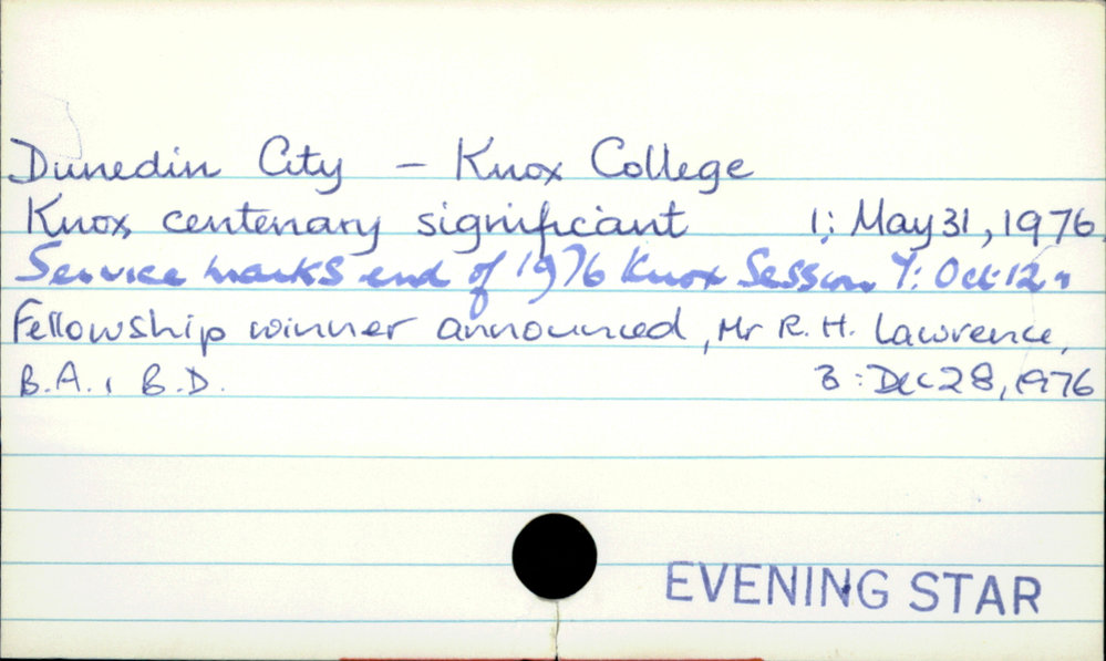 Dunedin Public Libraries (3rd Apr 2017). Dunedin City - Knox College. In Website Dunedin Public Libraries. Retrieved 4th Apr 2026 01:03, from https://dunedin.recollect.co.nz/nodes/view/105568