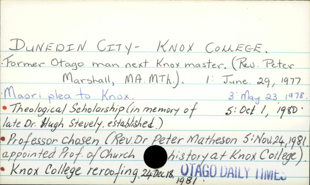 Dunedin Public Libraries (3rd Apr 2017). DUNEDIN CITY - KNOX COLLEGE.. In Website Dunedin Public Libraries. Retrieved 4th Apr 2026 01:10, from https://dunedin.recollect.co.nz/nodes/view/105569