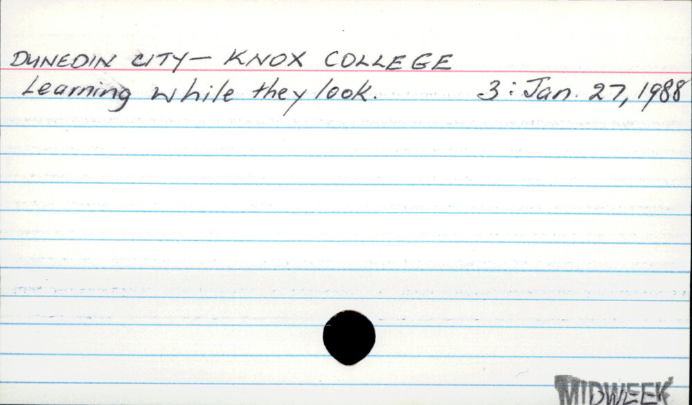 Dunedin Public Libraries (3rd Apr 2017). DUNEDIN CITY - KNOX COLLEGE. In Website Dunedin Public Libraries. Retrieved 4th Apr 2026 01:10, from https://dunedin.recollect.co.nz/nodes/view/105577