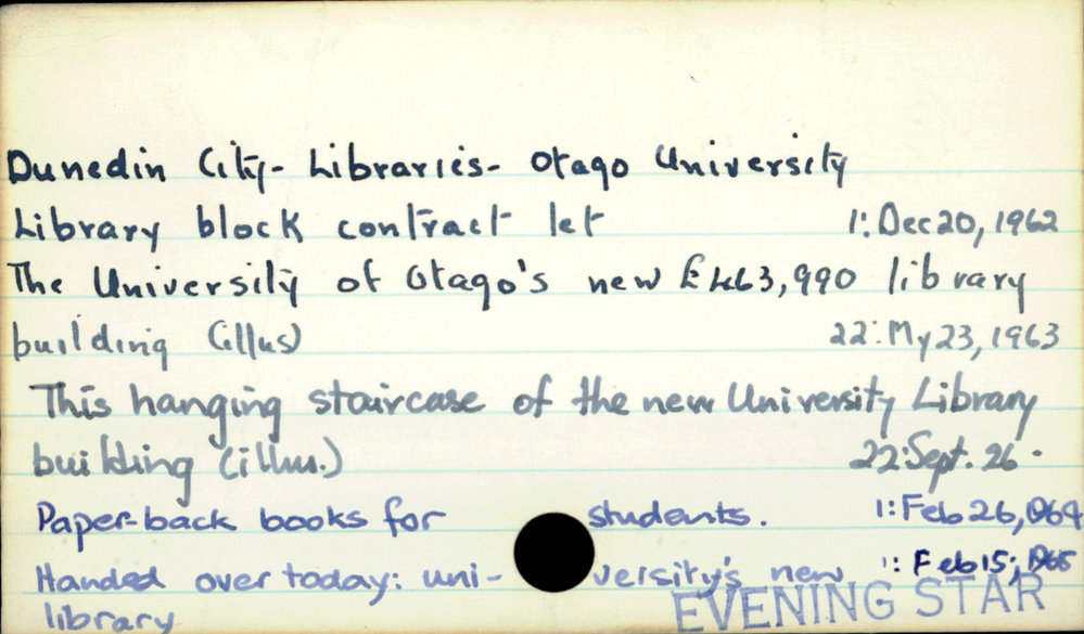 Dunedin Public Libraries (26th Apr 2017). Dunedin City - Libraries- Otago University. In Website Dunedin Public Libraries. Retrieved 2nd Apr 2026 17:46, from https://dunedin.recollect.co.nz/nodes/view/106337