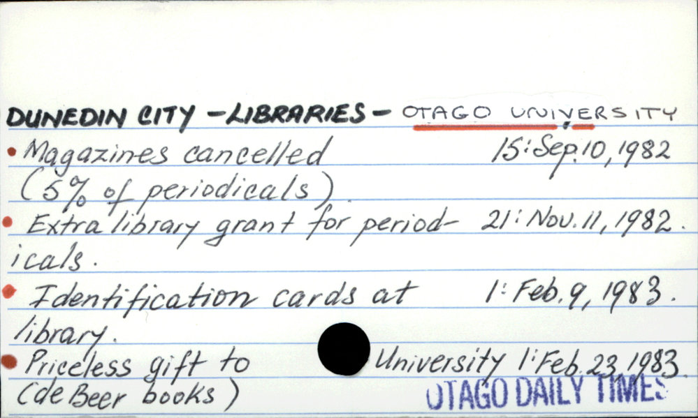Dunedin Public Libraries (28th Apr 2017). DUNEDIN CITY - LIBRARIES - OTAGO UNIVERSITY. In Website Dunedin Public Libraries. Retrieved 2nd Apr 2026 17:46, from https://dunedin.recollect.co.nz/nodes/view/106350