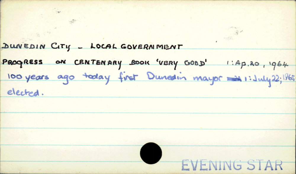 Dunedin Public Libraries (6th May 2017). DUNEDIN CITY - LOCAL GOVERNMENT . In Website Dunedin Public Libraries. Retrieved 2nd Apr 2026 14:10, from https://dunedin.recollect.co.nz/nodes/view/107282