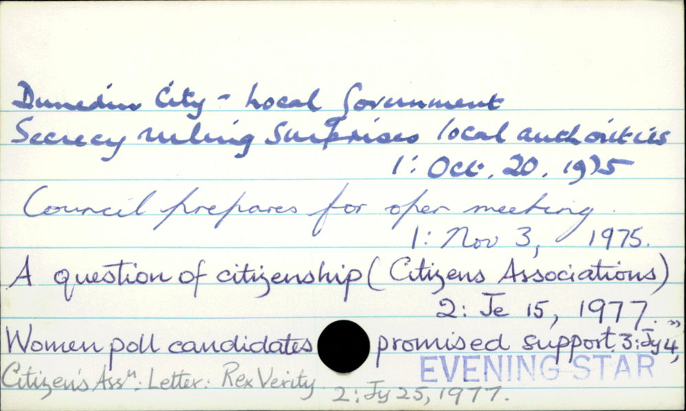 Dunedin Public Libraries (7th May 2017). Dunedin City - Local Government. In Website Dunedin Public Libraries. Retrieved 2nd Apr 2026 14:14, from https://dunedin.recollect.co.nz/nodes/view/107290