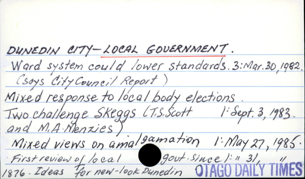 Dunedin Public Libraries (4th Apr 2017). Dunedin City - Local government. In Website Dunedin Public Libraries. Retrieved 2nd Apr 2026 14:16, from https://dunedin.recollect.co.nz/nodes/view/107293
