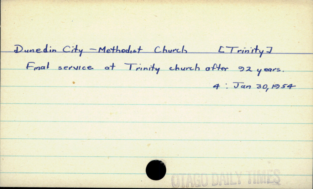 Dunedin Public Libraries (1st May 2017). Dunedin City - Methodist Church - Trinity. In Website Dunedin Public Libraries. Retrieved 27th Mar 2026 15:06, from https://dunedin.recollect.co.nz/nodes/view/108294