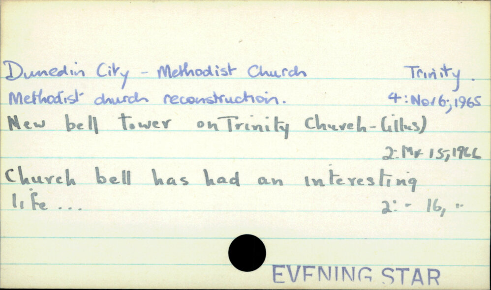Dunedin Public Libraries (20th May 2017). Dunedin City - Methodist Church - Trinity. In Website Dunedin Public Libraries. Retrieved 27th Mar 2026 15:07, from https://dunedin.recollect.co.nz/nodes/view/108298
