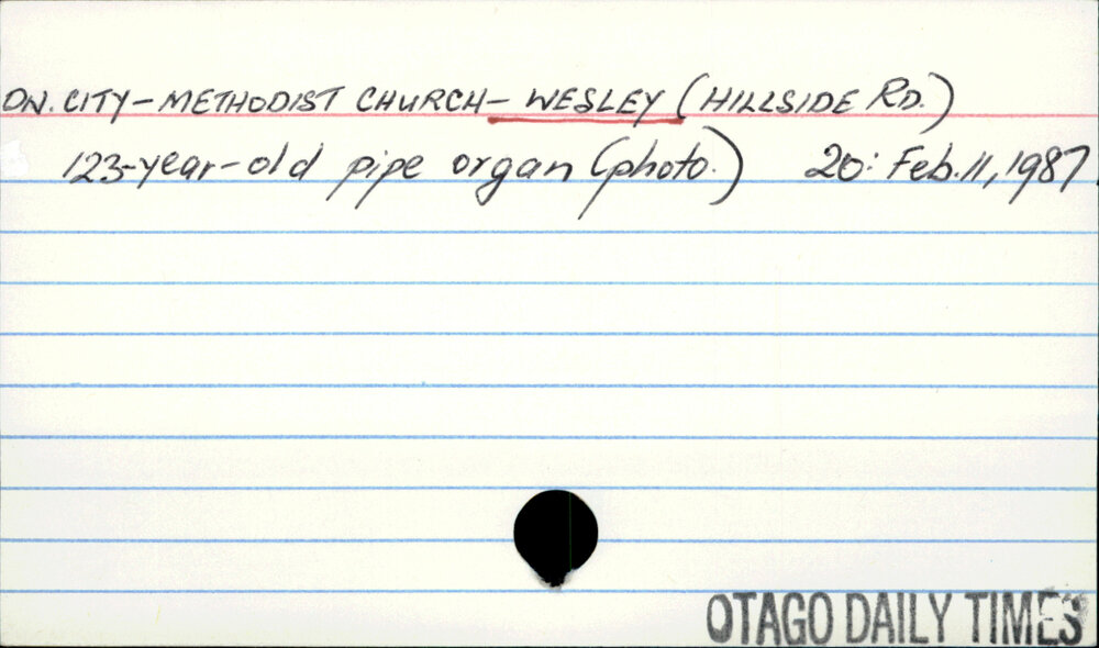 Dunedin Public Libraries (20th May 2017). Dunedin City - Methodist Church - Wesley (Hillside Rd.). In Website Dunedin Public Libraries. Retrieved 27th Mar 2026 15:06, from https://dunedin.recollect.co.nz/nodes/view/108308