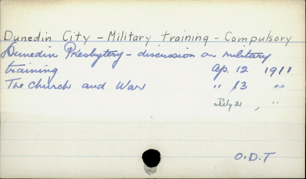 Dunedin Public Libraries (1st May 2017). Dunedin City - Military training - Compulsory. In Website Dunedin Public Libraries. Retrieved 27th Mar 2026 15:08, from https://dunedin.recollect.co.nz/nodes/view/108311