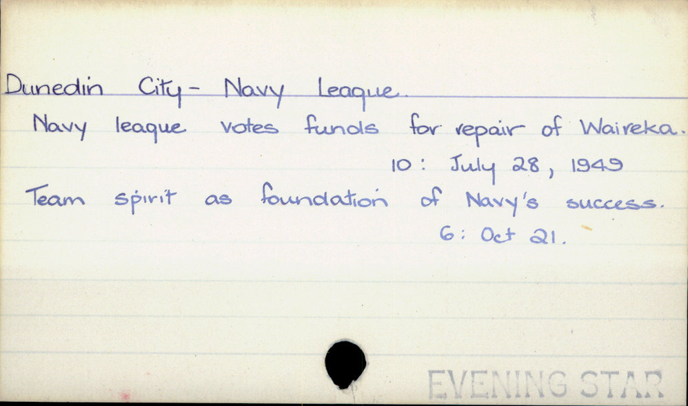 Dunedin Public Libraries (7th Jun 2017). Dunedin City - Navy League. In Website Dunedin Public Libraries. Retrieved 4th Apr 2026 21:03, from https://dunedin.recollect.co.nz/nodes/view/109994