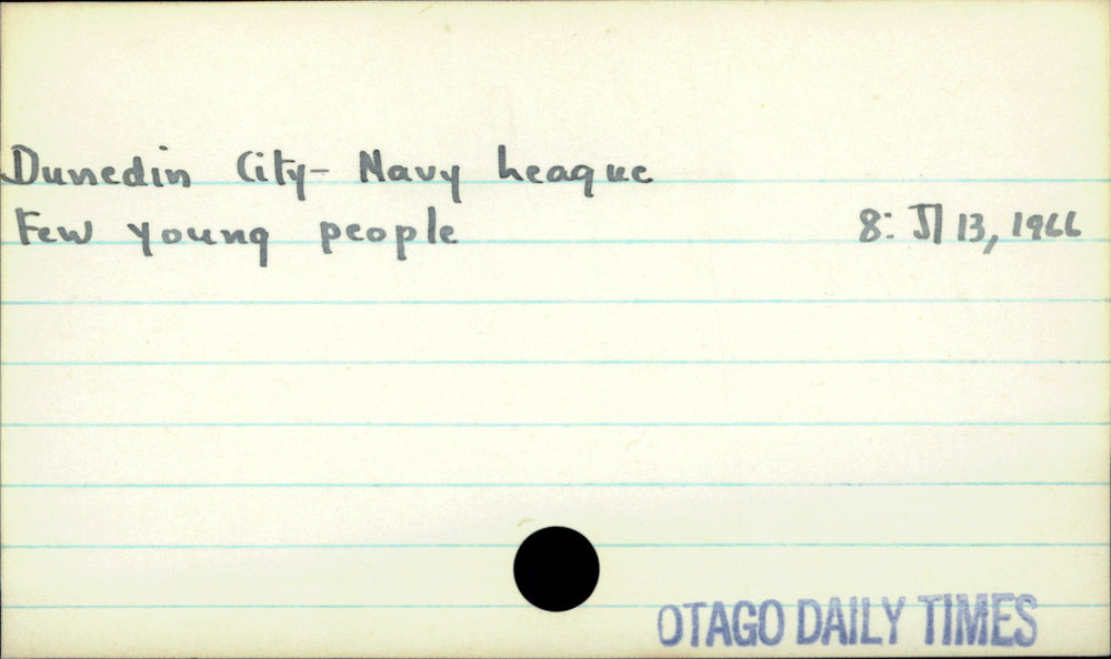 Dunedin Public Libraries (18th Jun 2017). Dunedin City - Navy League . In Website Dunedin Public Libraries. Retrieved 4th Apr 2026 21:01, from https://dunedin.recollect.co.nz/nodes/view/109997