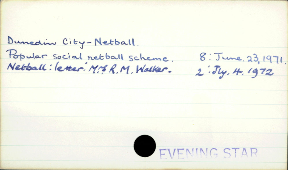 Dunedin Public Libraries (7th Jun 2017). Dunedin City - Netball. In Website Dunedin Public Libraries. Retrieved 4th Apr 2026 21:03, from https://dunedin.recollect.co.nz/nodes/view/110003