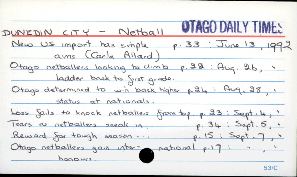 Dunedin Public Libraries (16th Jun 2017). Dunedin City-Netball. In Website Dunedin Public Libraries. Retrieved 4th Apr 2026 21:03, from https://dunedin.recollect.co.nz/nodes/view/110006