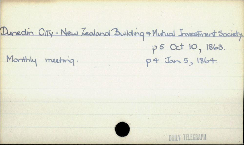 Dunedin Public Libraries (7th Jun 2017). Dunedin City - New Zealand Building & Mutual Investment Society. In Website Dunedin Public Libraries. Retrieved 4th Apr 2026 21:03, from https://dunedin.recollect.co.nz/nodes/view/110011