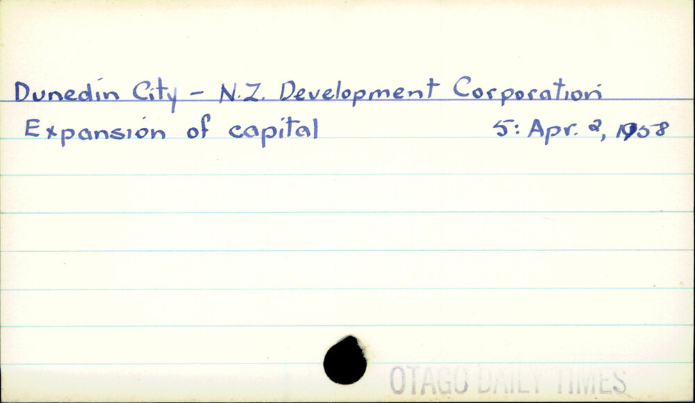 Dunedin Public Libraries (7th Jun 2017). Dunedin City - New Zealand Development Corporation. In Website Dunedin Public Libraries. Retrieved 4th Apr 2026 21:03, from https://dunedin.recollect.co.nz/nodes/view/110014