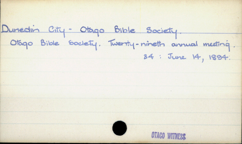 Dunedin Public Libraries (3rd Jul 2017). Dunedin City - Otago Bible Society. In Website Dunedin Public Libraries. Retrieved 2nd Apr 2026 17:46, from https://dunedin.recollect.co.nz/nodes/view/110918