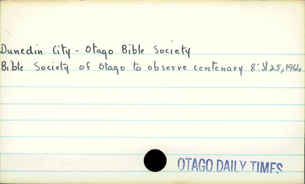 Dunedin Public Libraries (4th Jul 2017). Dunedin City - Otago Bible Society. In Website Dunedin Public Libraries. Retrieved 2nd Apr 2026 17:46, from https://dunedin.recollect.co.nz/nodes/view/110920