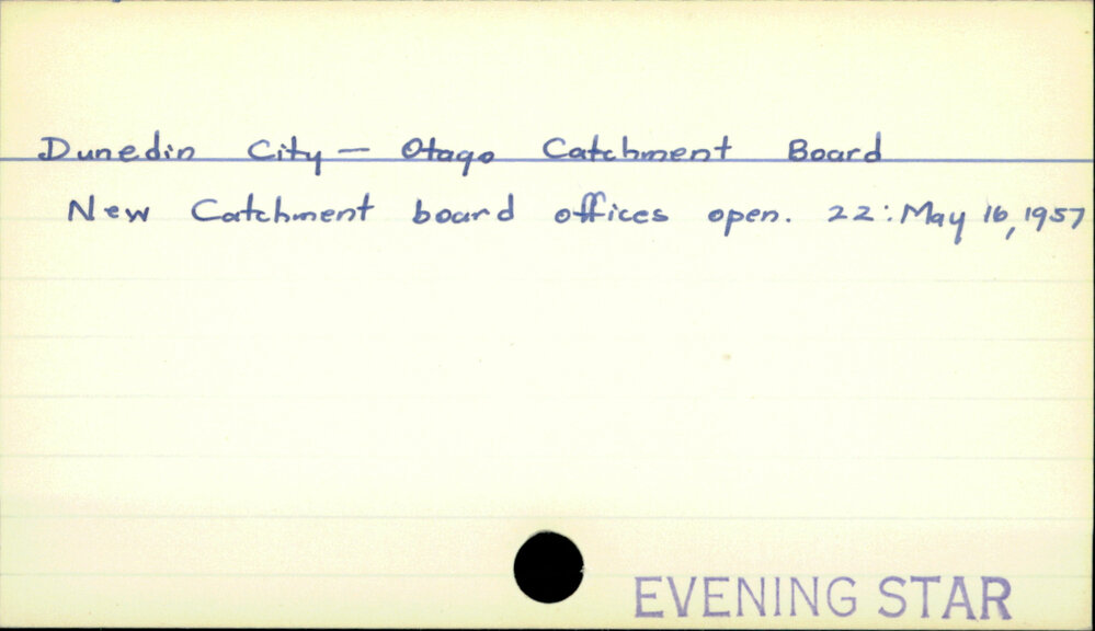 Dunedin Public Libraries (3rd Jul 2017). Dunedin City- Otago Catchment Board . In Website Dunedin Public Libraries. Retrieved 2nd Apr 2026 17:46, from https://dunedin.recollect.co.nz/nodes/view/110928