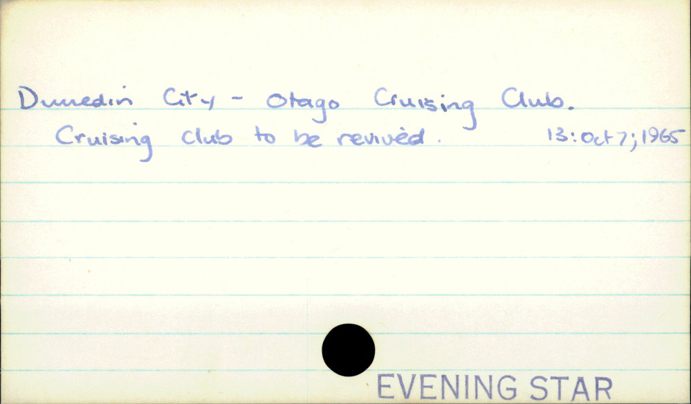 Dunedin Public Libraries (3rd Jul 2017). Dunedin City- Otago Cruising Club . In Website Dunedin Public Libraries. Retrieved 2nd Apr 2026 17:46, from https://dunedin.recollect.co.nz/nodes/view/110936