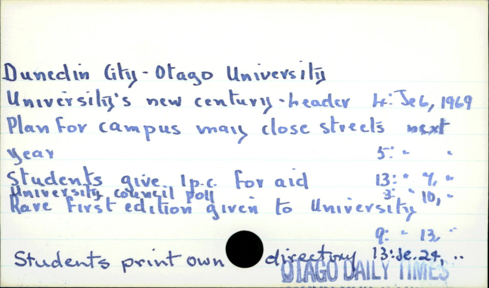 Dunedin Public Libraries (17th Jul 2017). DUNEDIN CITY - OTAGO UNIVERSITY. In Website Dunedin Public Libraries. Retrieved 27th Mar 2026 18:12, from https://dunedin.recollect.co.nz/nodes/view/111850