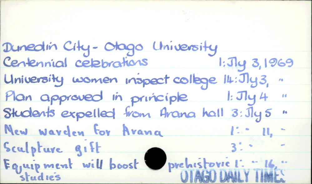 Dunedin Public Libraries (17th Jul 2017). DUNEDIN CITY - OTAGO UNIVERSITY. In Website Dunedin Public Libraries. Retrieved 27th Mar 2026 18:06, from https://dunedin.recollect.co.nz/nodes/view/111852