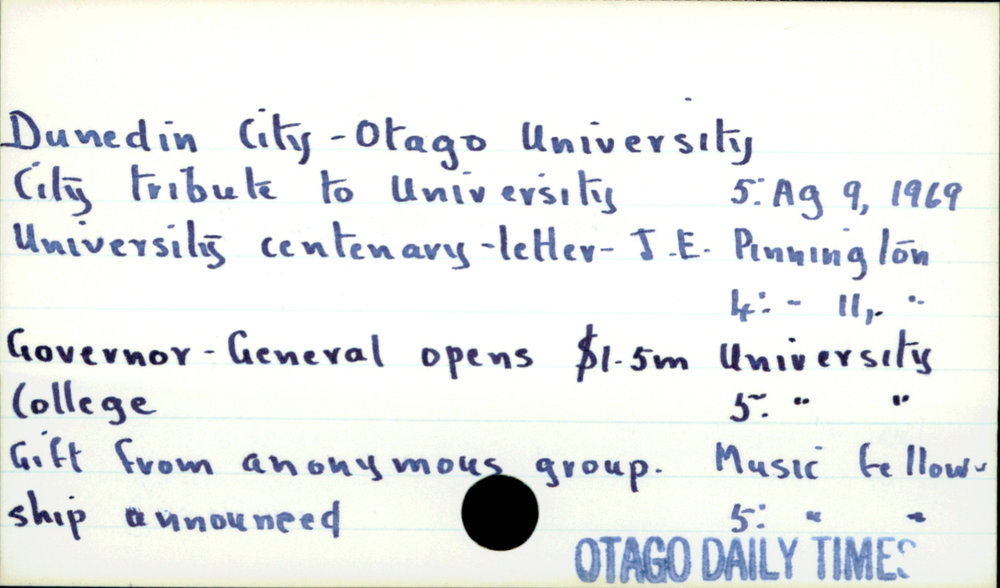 Dunedin Public Libraries (17th Jul 2017). Dunedin City- Otago University. In Website Dunedin Public Libraries. Retrieved 27th Mar 2026 18:11, from https://dunedin.recollect.co.nz/nodes/view/111856
