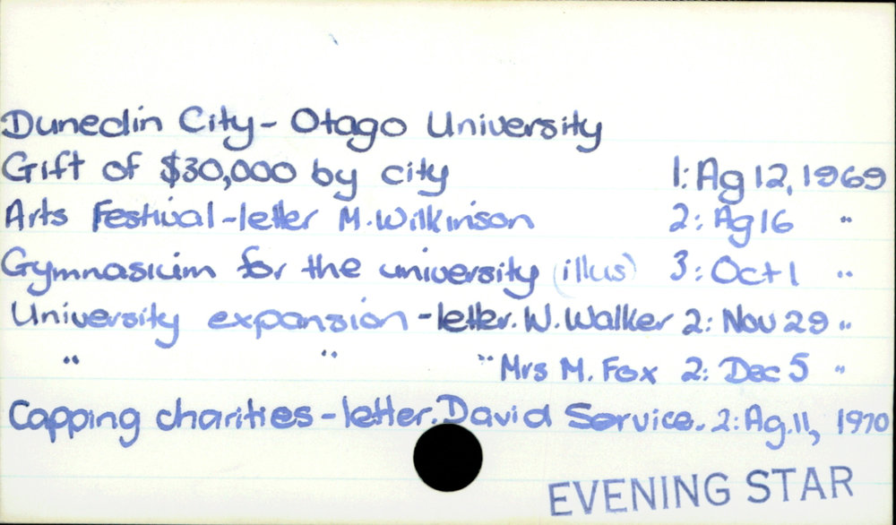 Dunedin Public Libraries (17th Jul 2017). Dunedin City- Otago University. In Website Dunedin Public Libraries. Retrieved 27th Mar 2026 18:11, from https://dunedin.recollect.co.nz/nodes/view/111857