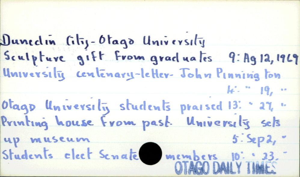 Dunedin Public Libraries (17th Jul 2017). Dunedin City- Otago University. In Website Dunedin Public Libraries. Retrieved 27th Mar 2026 18:06, from https://dunedin.recollect.co.nz/nodes/view/111858