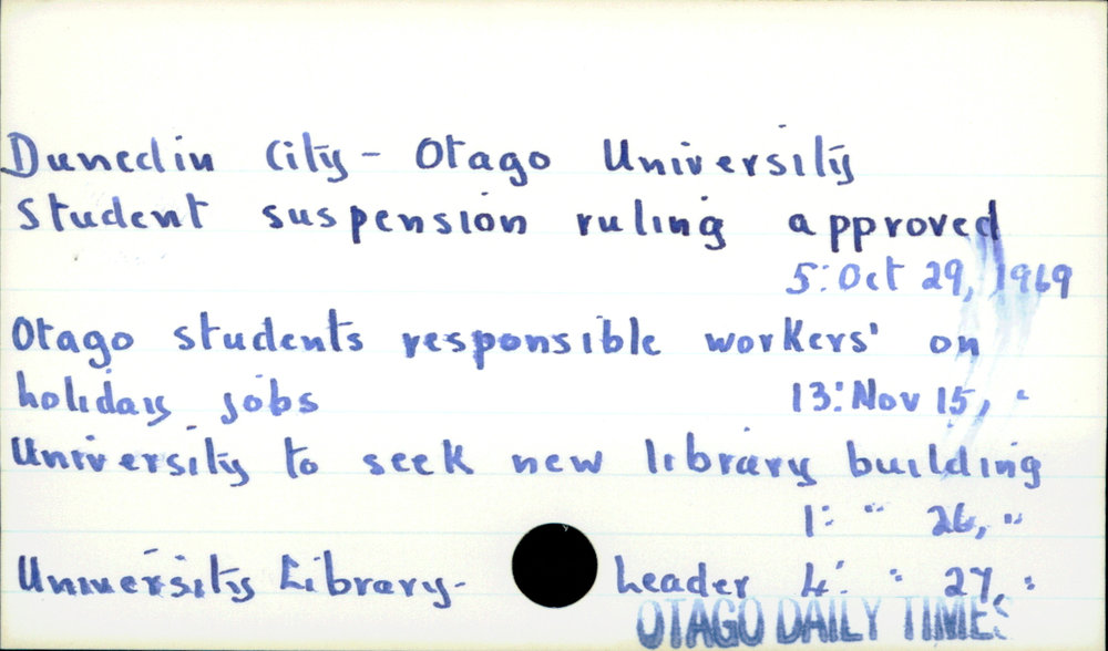 Dunedin Public Libraries (17th Jul 2017). Dunedin City- Otago University. In Website Dunedin Public Libraries. Retrieved 27th Mar 2026 18:06, from https://dunedin.recollect.co.nz/nodes/view/111860