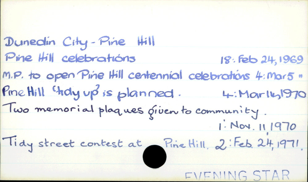Dunedin Public Libraries (2nd Aug 2017). Dunedin City - Pine Hill. In Website Dunedin Public Libraries. Retrieved 27th Mar 2026 10:54, from https://dunedin.recollect.co.nz/nodes/view/112769