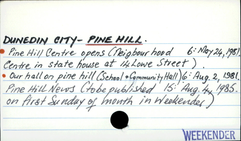 Dunedin Public Libraries (3rd Aug 2017). DUNEDIN CITY - PINE HILL. In Website Dunedin Public Libraries. Retrieved 27th Mar 2026 10:53, from https://dunedin.recollect.co.nz/nodes/view/112774