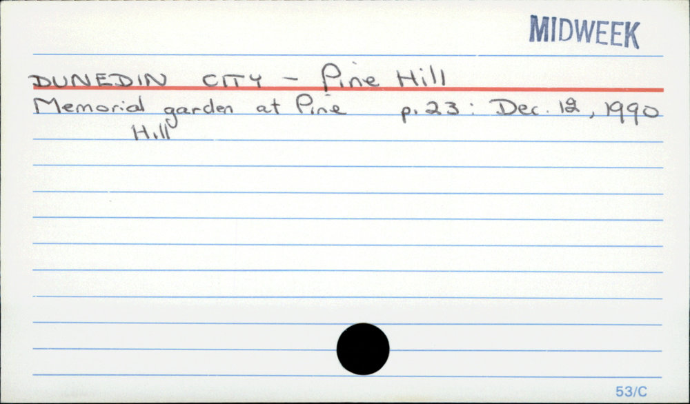 Dunedin Public Libraries (1st Aug 2017). DUNEDIN CITY - PINE HILL. In Website Dunedin Public Libraries. Retrieved 27th Mar 2026 10:48, from https://dunedin.recollect.co.nz/nodes/view/112778