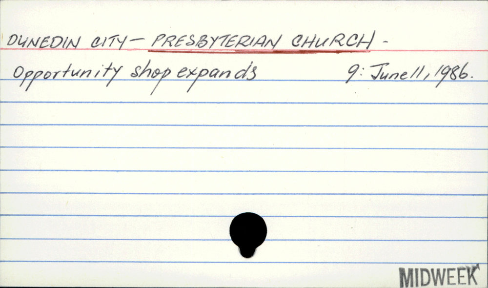 Dunedin Public Libraries (22nd Aug 2017). Dunedin City - Presbyterian Church -. In Website Dunedin Public Libraries. Retrieved 27th Mar 2026 10:28, from https://dunedin.recollect.co.nz/nodes/view/113541