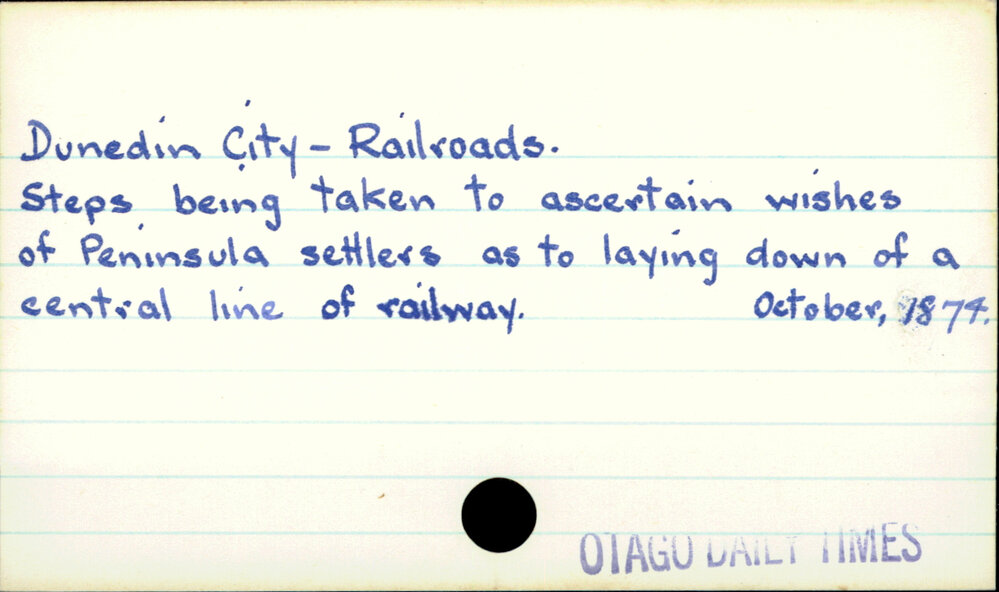 Dunedin Public Libraries (30th Aug 2017). Dunedin City - Railroads. In Website Dunedin Public Libraries. Retrieved 27th Mar 2026 10:37, from https://dunedin.recollect.co.nz/nodes/view/114412