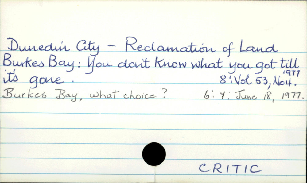 Dunedin Public Libraries (22nd Sep 2017). Dunedin City - Reclamation of Land. In Website Dunedin Public Libraries. Retrieved 2nd Apr 2026 15:53, from https://dunedin.recollect.co.nz/nodes/view/114811