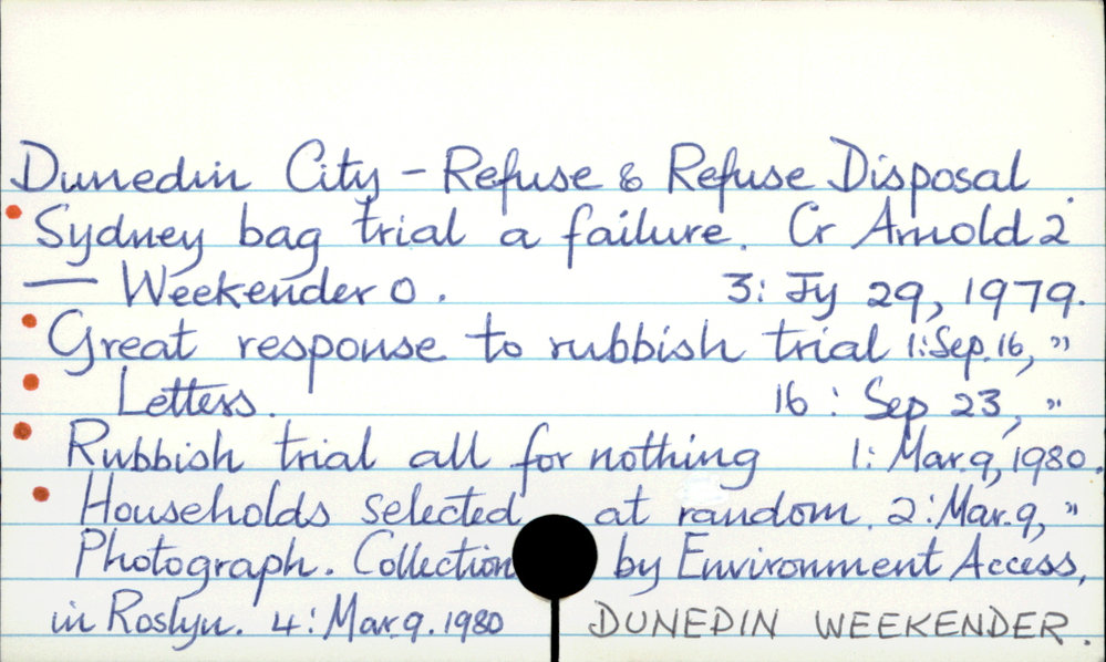 Dunedin Public Libraries (20th Sep 2017). Dunedin City - Refuse and refuse disposal. In Website Dunedin Public Libraries. Retrieved 2nd Apr 2026 15:47, from https://dunedin.recollect.co.nz/nodes/view/114937