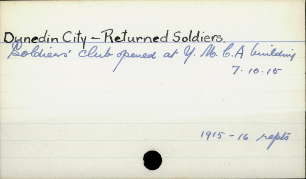 Dunedin Public Libraries (18th Sep 2017). Dunedin City - Returned Soldiers. In Website Dunedin Public Libraries. Retrieved 2nd Apr 2026 19:50, from https://dunedin.recollect.co.nz/nodes/view/115259